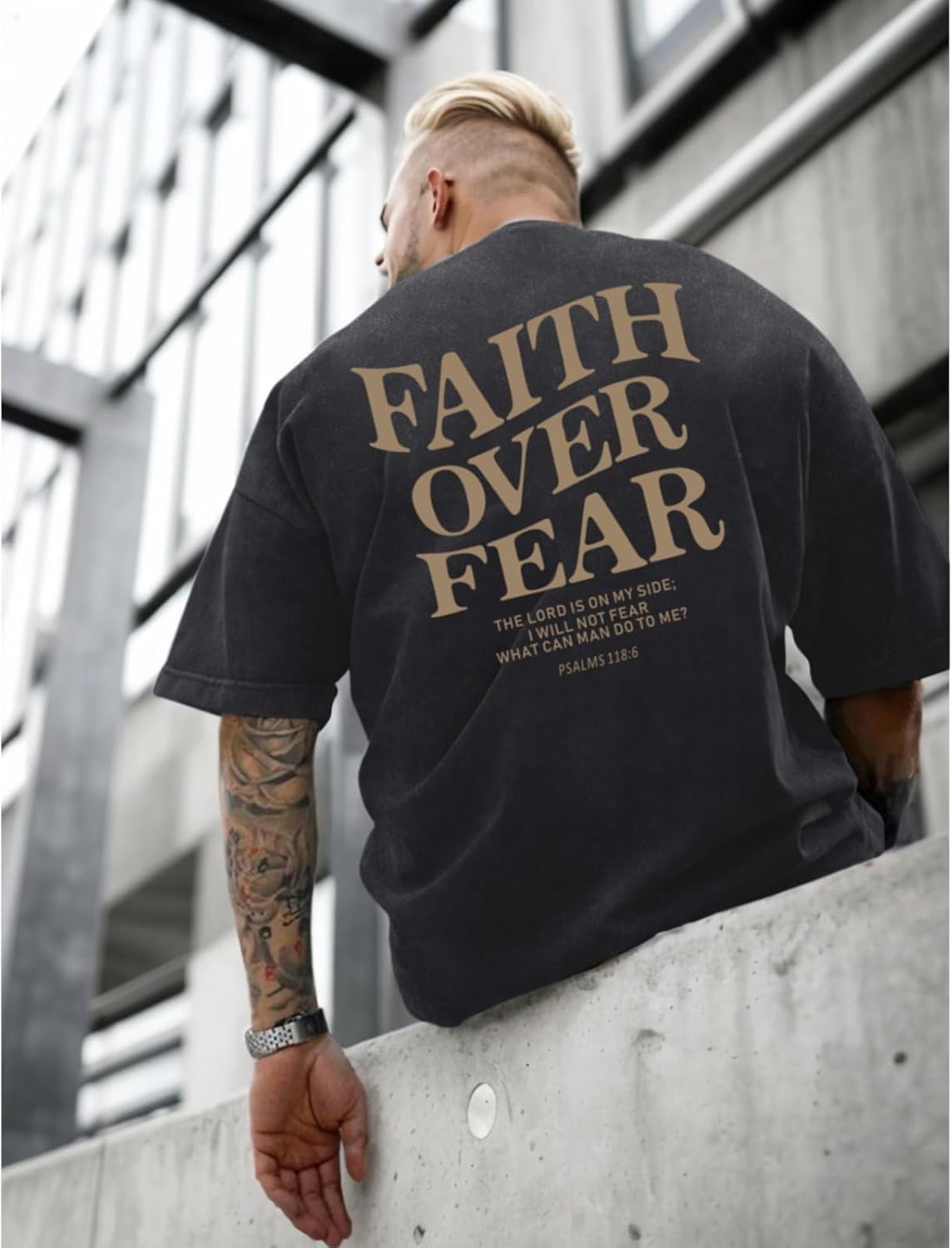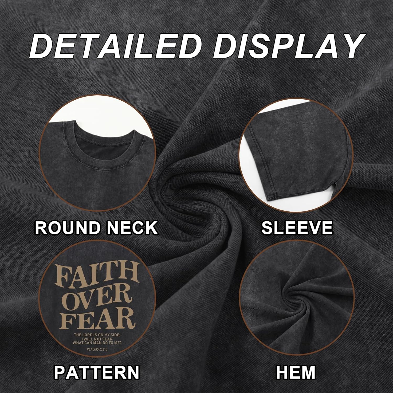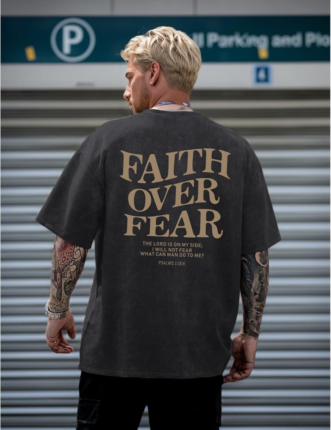 Faith Over Fear Shirt for Men Oversized Graphic Tees Acid Wash God T-Shirt