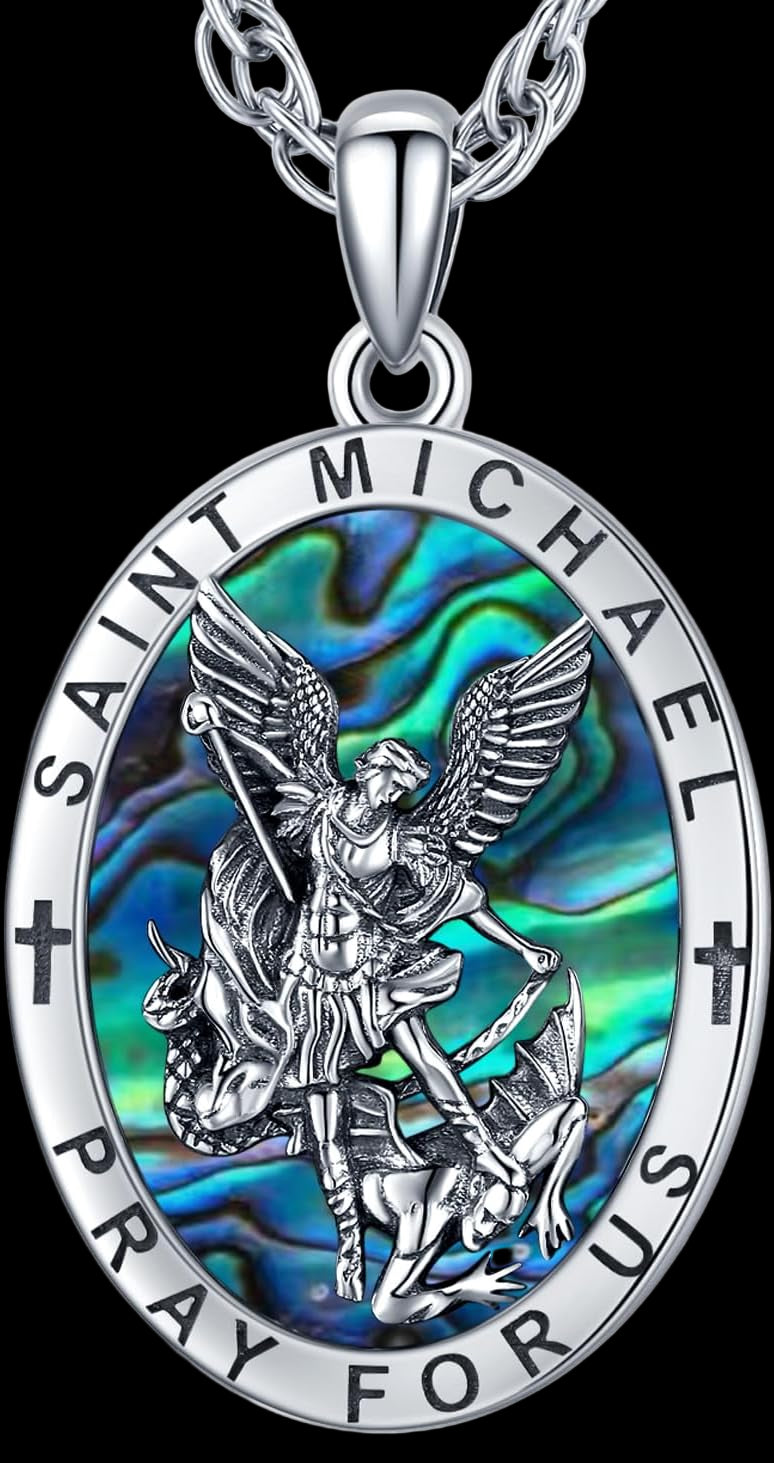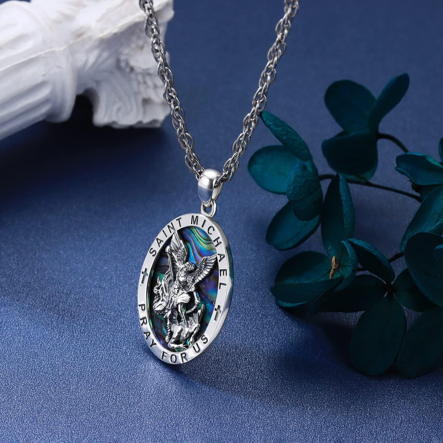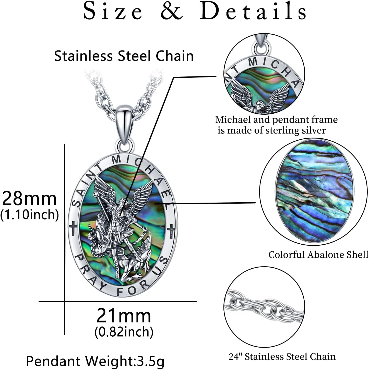 Sterling Silver and Colorful Abalone Shell: St michael pendant is made from 925 Sterling Silver with colorful abalone shell which is smooth and delicate, long-lasting luster. Each piece is Lead-free, Nickel-free and Cadmium-free and skin-friendly. Passed SGS Inspection. Archangel michael pendant won't turn your skin green or black!